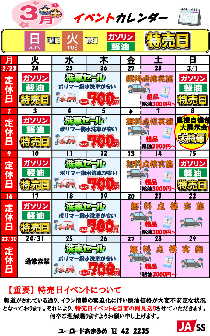 | 部署 | 日にち | 営業時間 | TEL | FAX |